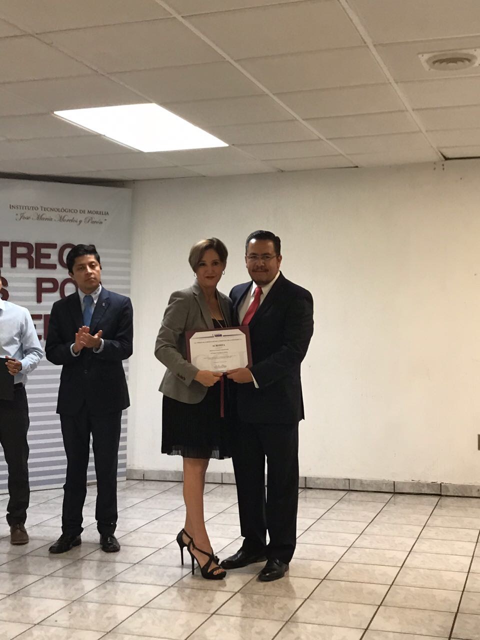 Entrega de las Acreditaciones ante CACEI a las carreras de ISC, ITIC e IINF, por parte del Director del ITM Ing. Paulino Alberto Rivas Martínez a la Jefa del Departamento de Sistemas y Computación M.C, Gabriela Lúa Vargas, 6 de octubre del 2017. |