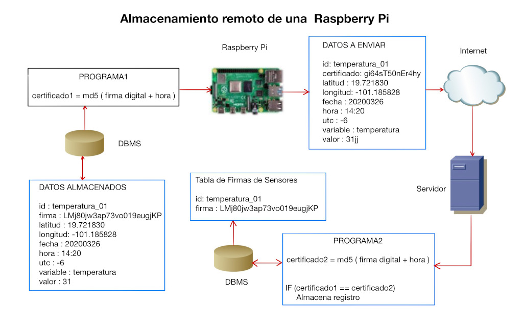 - Lee una firma, lee datos de los sensores, genera certificado y lo envia a un servidor usando HTTP (codigo python, python_seguridad_certificado_enviar.py).